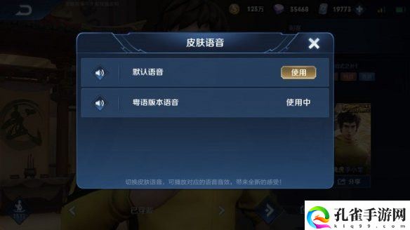 3、皮肤切换到李小龙,在定制版的右边点击语音按钮。