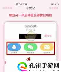 恋爱记支持微信朋友圈、微博、抖音等社交平台分享。分享邀请海报或文案,其中包含您的专属邀请信息。您的另一半点击分享内容,即可跳转到下载页面。下载、注册、登录后,即可与您在恋爱记中相遇。