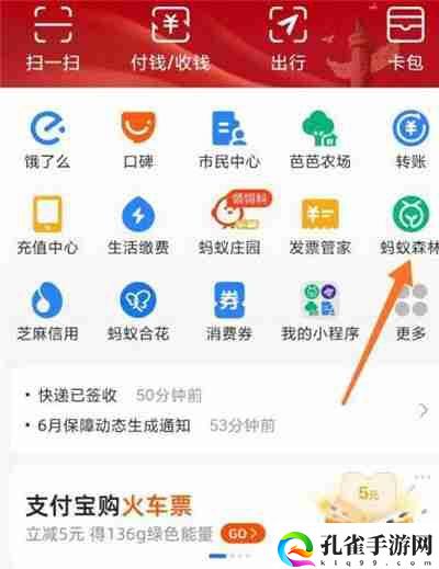 打开支付宝APP,在首页即可找到“蚂蚁森林”入口。